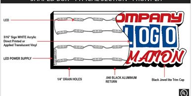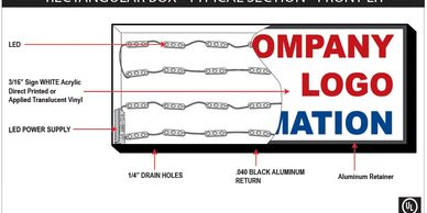 We offer a wide variety of LED lighted box signage solutions to meet your needs while working within your budget. Our light boxes are made primarily of aluminum and a highly durable polycarbonate AKA Lexan. They are weather-resistant and are LED back-lit with white LEXAN panel(s) in the front that displays your logo or promotional message.